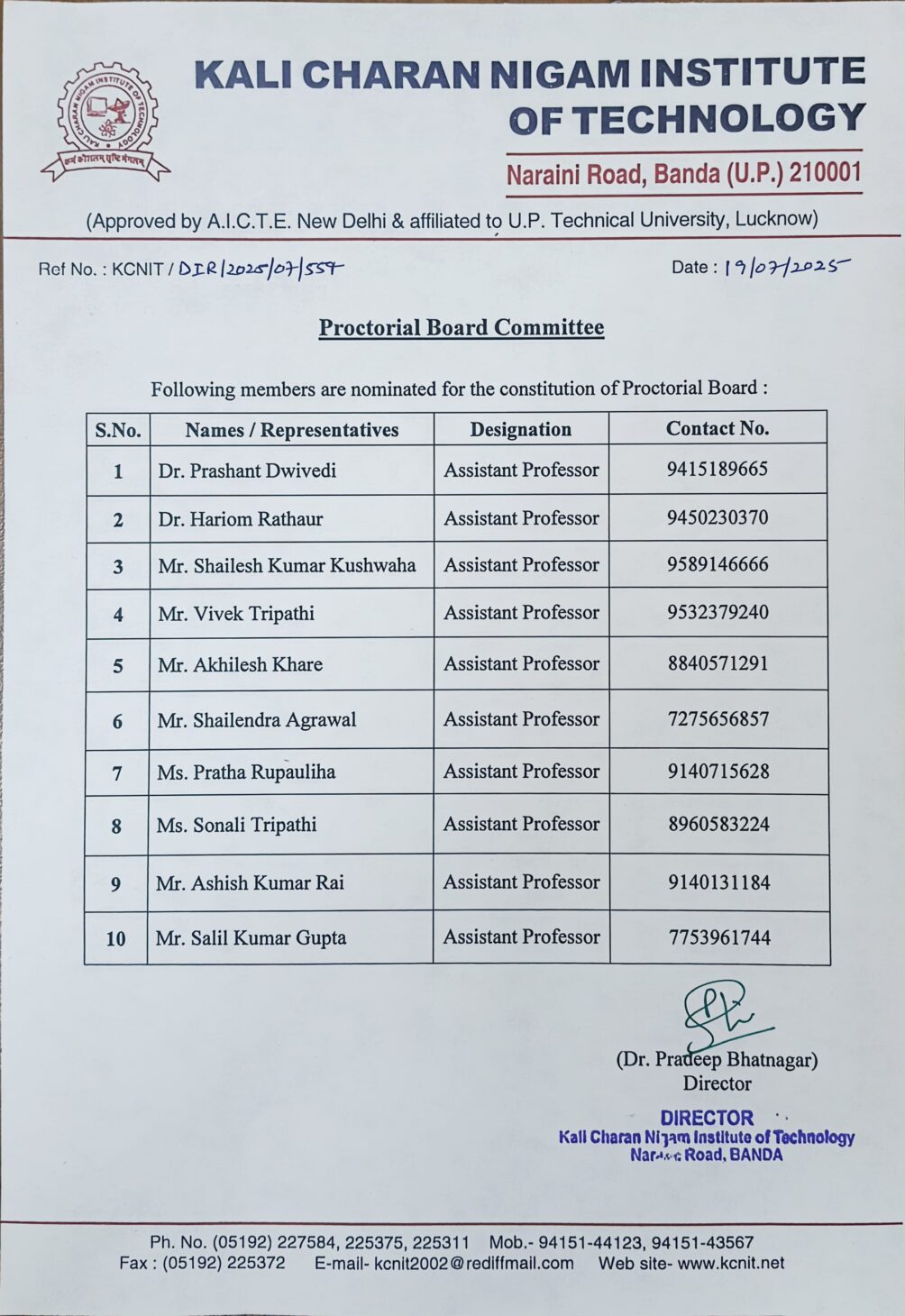 The Proctorial Board of KCNIT comprises following members.